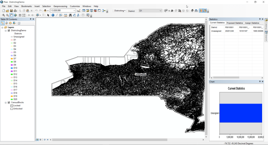 I just saw that the NYS Redistricting Maps were rejected (https://www.whec.com/national/judge-rejects-new-yorks-redistricting-plan-orders-new-maps/6434302/?cat=10036). When I worked in local government I helped the board of elections in the redistricting process by providing training and getting the Census data into a GIS Project for them. With a lot of grassroots organizations out there trying to work with the process, I just want to help by providing a brief walk-through of an ArcMap tool for districting. This tool is one of the two tools that have not made it into ArcGIS Pro and is the reason that I still have ArcMap Installed.