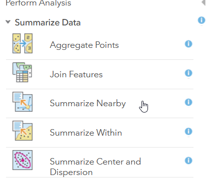 - Open the Analysis tools and go to Summarize Data