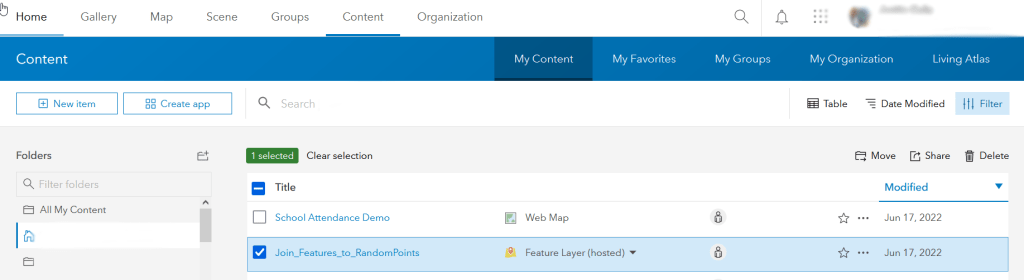 - One benefit to having it this way is you have it on ArcGIS Online so you can share the file and map within your organization.