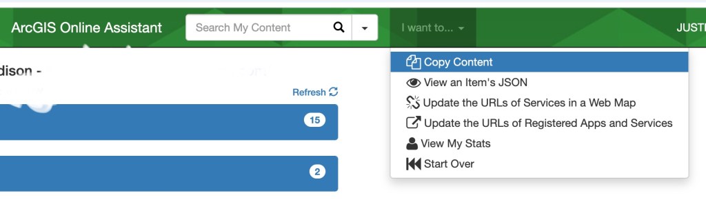 Note: This process only copies webmaps and feature services. It cannot copy StoryMaps and Applications.