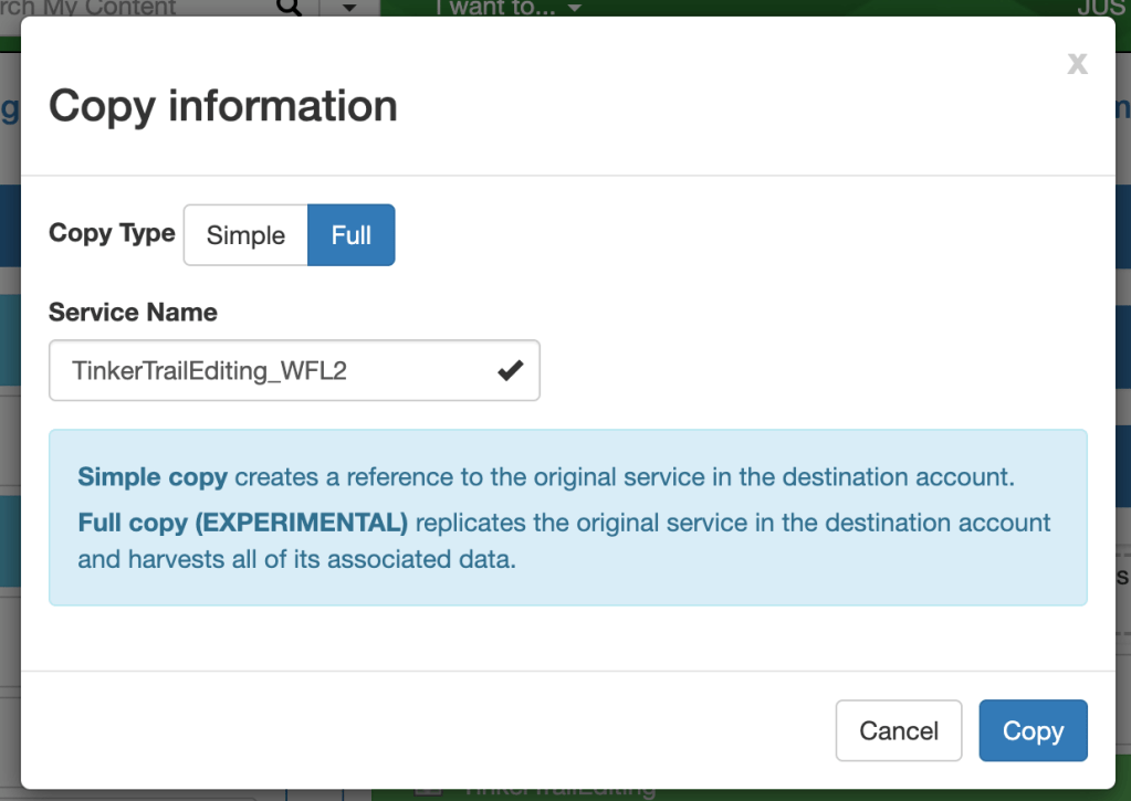 Currently, the full copy is experimental so just make sure it works. When you select it, you will be presented with the option to change the name of the service. Then it will copy and create the services.